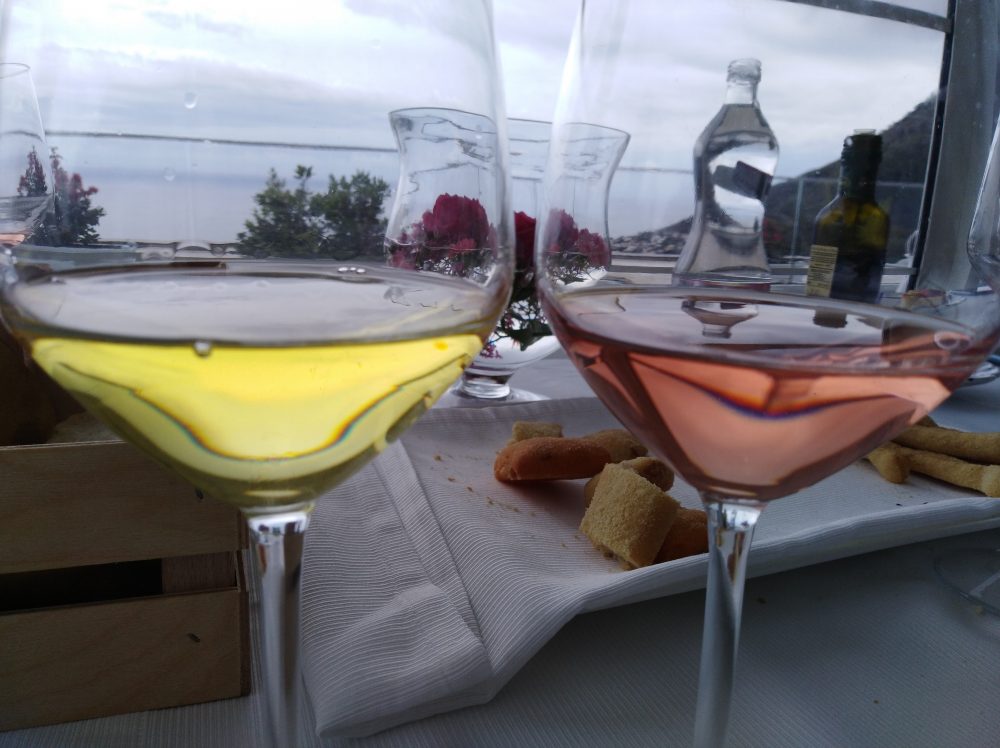 Ad accompagnare tutto il pasto Andrea ha pensato bene di portare dalla sua cantina tre eccellenti bottiglie: Rosato Costa d’Amalfi Doc 2018 da Aglianico e Piedirosso e l’immenso Furore Bianco Fiorduva Costa d’Amalfi del 2008 e del 2013 con Fenile, Ripoli e Ginestra. Vini strepitosi. Sui dolci, invece, è stato servito il Passito Mel di Antonio Caggiano con Fiano e Greco. Ottimo senz’altro anche questo vino.