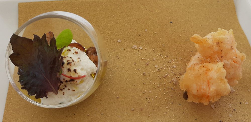 Ristorante Melchio’ – Ricottina saporita con porcini saltati e scampo in tempura