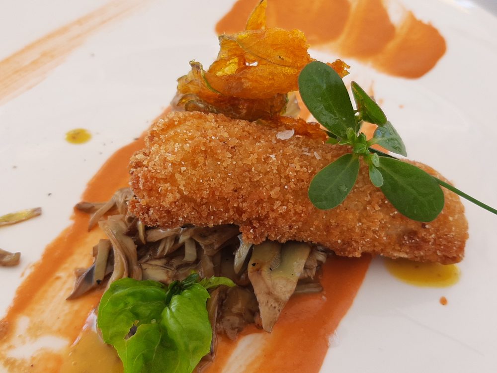 Ristorante Melchio’ – Crocchetta di patate e pesce con carciofo grigliato