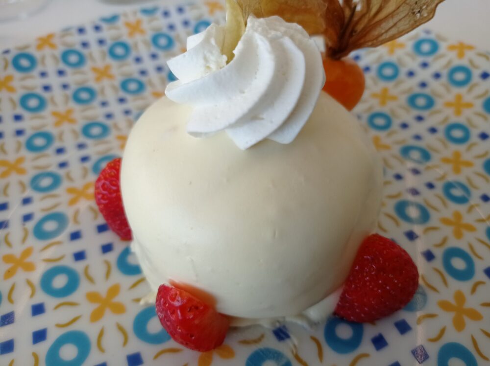 Per dessert delizia al limone con fragole. Dolce che ha visto la sua nascita nel 1978 proprio in Costiera Amalfitana. Massimamente goloso e connotato da un gusto molto molto delicato.