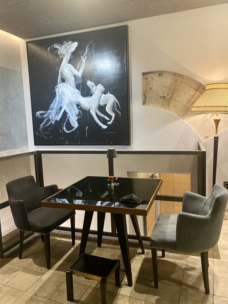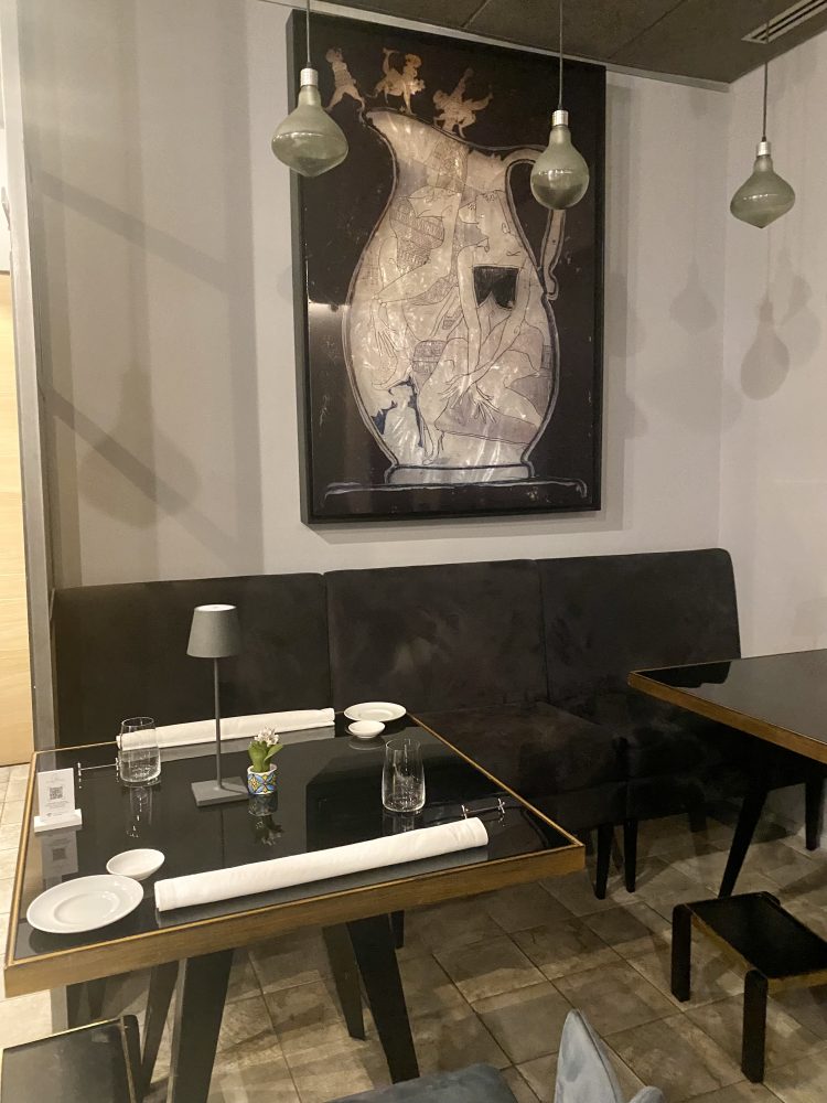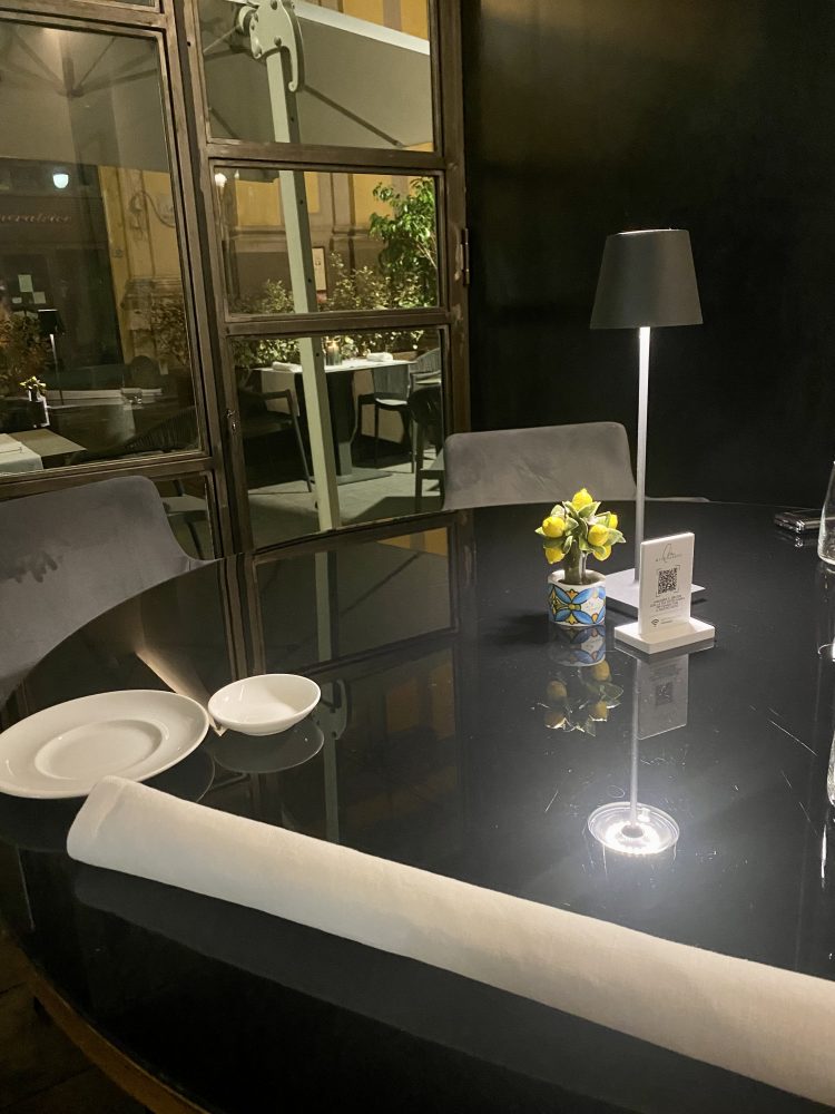 Ma veniamo intanto alla location, dove nulla è lasciato al caso e dove anche nell’arredo c’è un intreccio tra modernità e classicità, con tavoli ampi (per un totale di soli 30 coperti) e comode sedute, che esaltano la mise en place “nuda” e il tableware ricercato, con accessori che accentuano ancora di più l’esperienza gastronomica e culturale, visto che nei piatti si riassumono molti aspetti della storia del popolo partenopeo in particolare, e campano in generale.