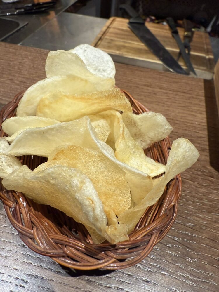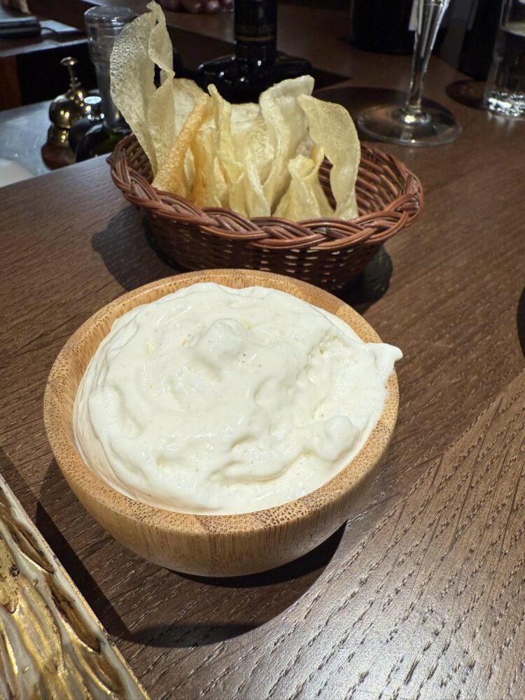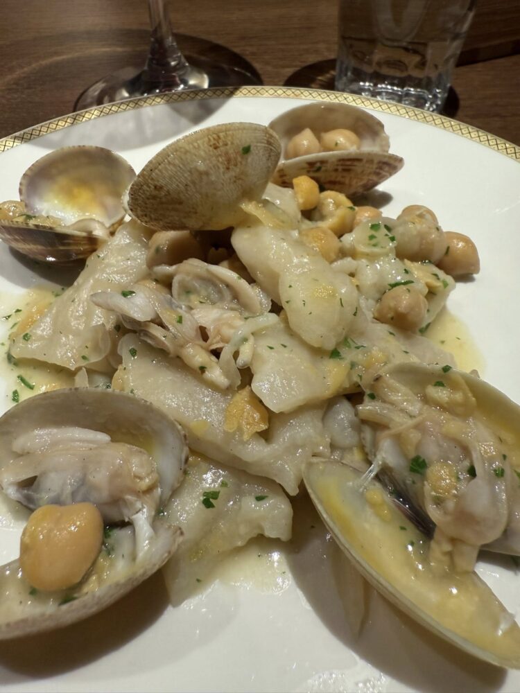 La Spagna, quella frequentazione con il figlio Micael, quando lavorava a Tickets con Albert Adrià, ha lasciato il segno: il patanegra arriva sempre con pane al pomodoro secondo la consuetudine spagnola, originali, invece, le chips con maionese al sifone. Tanta sostanza. Champagne in coppette di cristallo a forma di seno come oggi non si usano più, rossi importanti in calici che sembrano un invito a restare.