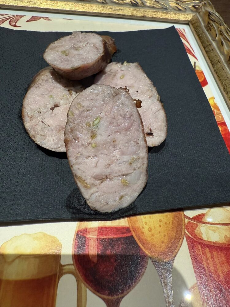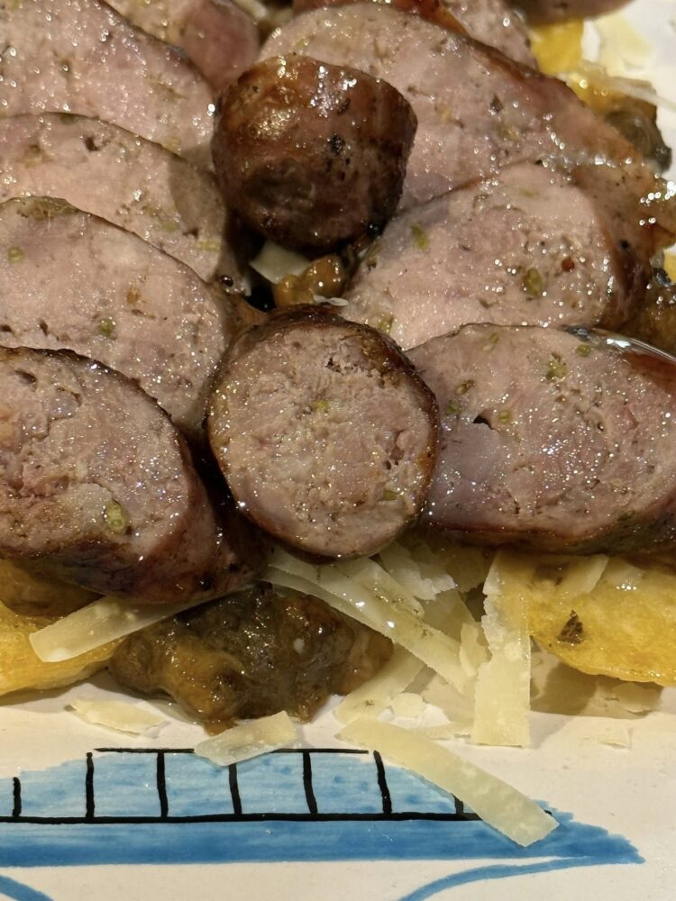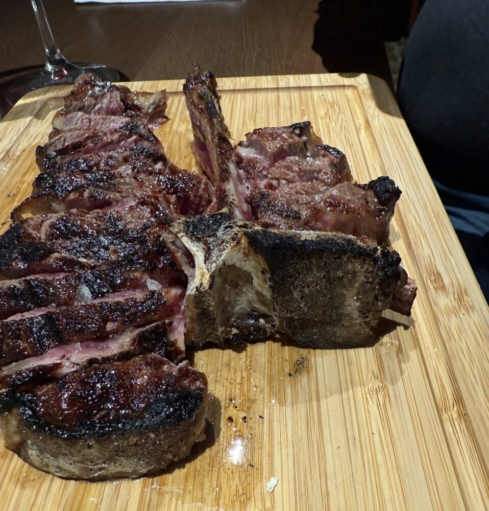 È lì che Michele comanda il fuoco come un direttore d’orchestra. È lì che inizia lo spettacolo: il crepitio, il fumo, il gesto sicuro. Lo fa con la precisione millimetrica dell’esperienza e della passione, a occhio. Anche quando guarda la sala dando le spalle alla brace sa perfettamente quando è il momento di girarsi e controllare la cottura. Ogni pezzo è trattato con rispetto, fantastico il sapore della salsiccia di maiale impreziosita dal finocchietto.È lì che tutto torna. Perché certe passioni non passano. Cambiano forma, magari, ma restano addosso come l’odore della legna sulle mani.