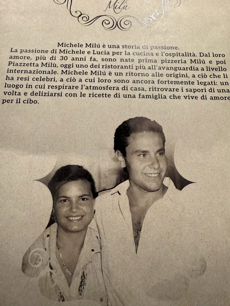 Il nuovo Michele Milù è a duecento metri di distanza a Piazzetta Milu, ma è un viaggio interiore lungo una vita. Un locale sartoriale, cucito addosso alle persone che lo abitano. Sempre con Lucia, compagna di sempre (a gennaio fanno quarant’anni insieme), e con le nuove generazioni che si intrecciano: le fidanzate di due figli che hanno scelto di condividere il loro sogno.