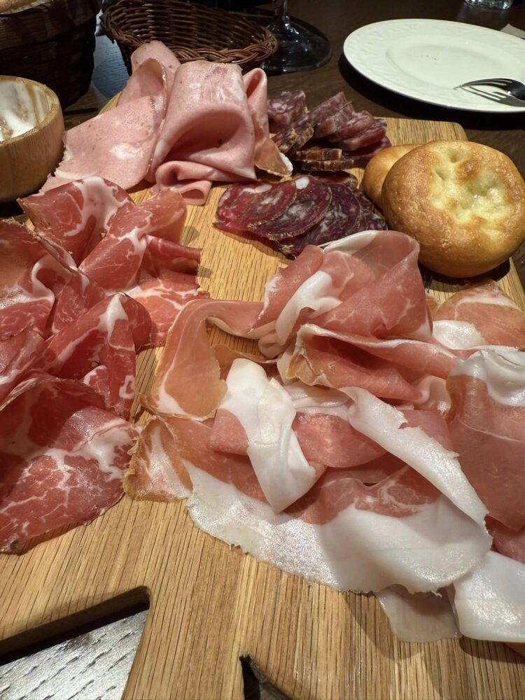 All’ingresso, sulla destra, il banco dei salumi: eccellenze nostrane e internazionali. Tavoli conviviali, grandi e accoglienti e uno chef table intimo, due posti, vista brace. Lì, mentre Michele sfiletta, sporziona, cuoce. Certe abitudini non si perdono.
