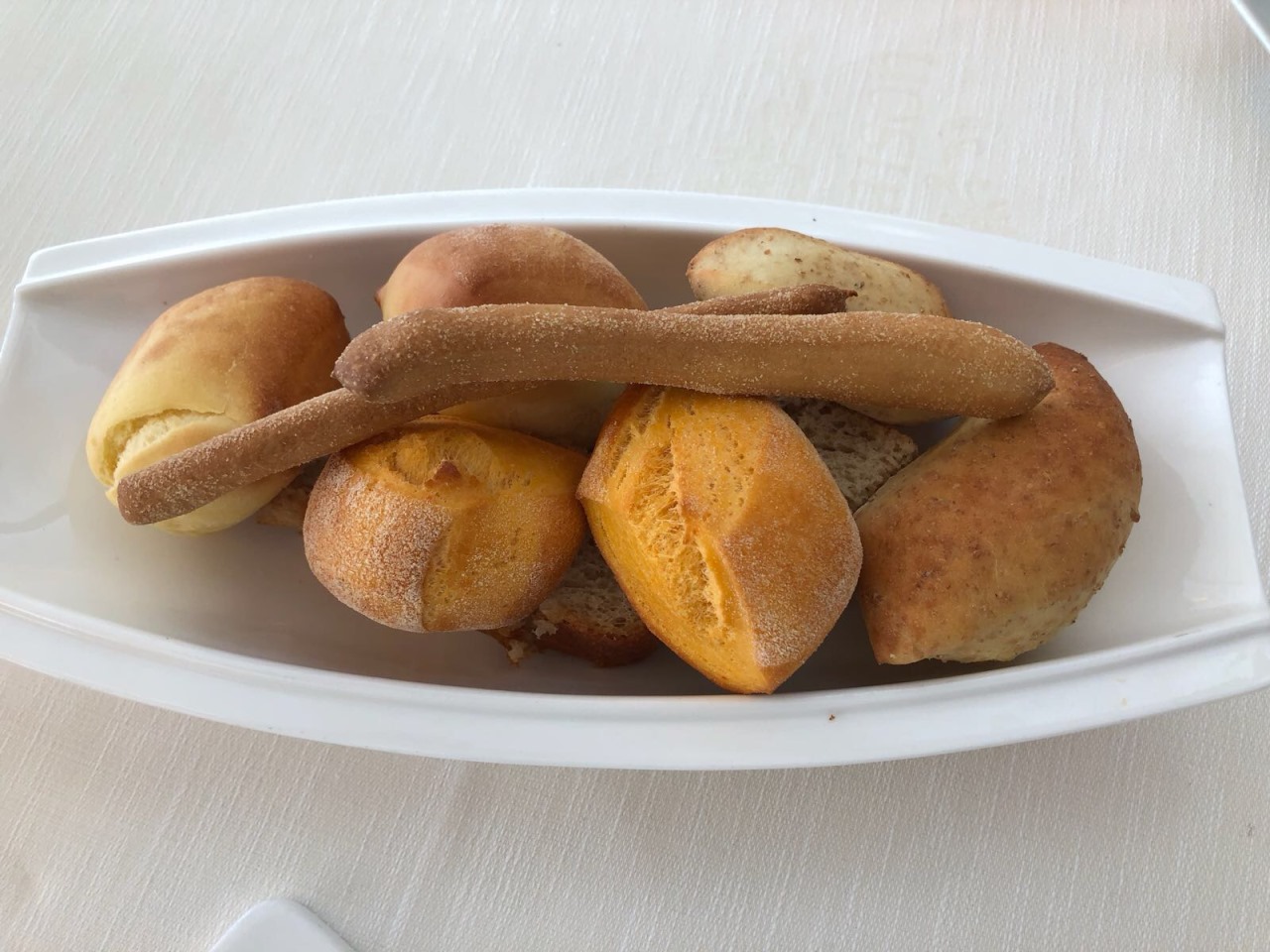 Florian Maison, focaccia, pane di diverse tipologie, grissini, tutto fragrante e di livello, cestino prontamente sostituito (e non integrato, bonus) a metà servizio