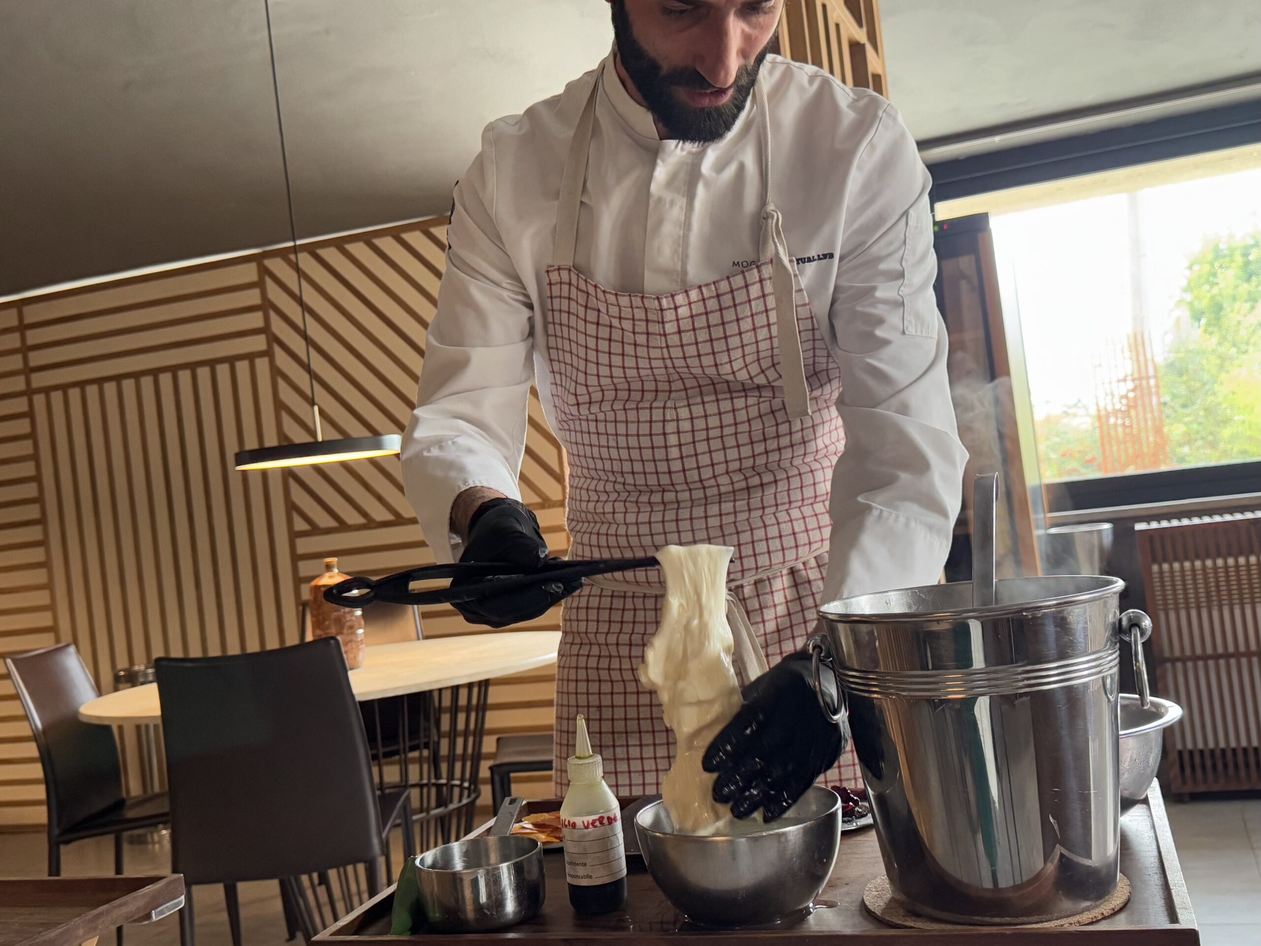 Filatura e mozzatura della mozzarella – Mogano Restaurant, 15/1/2025 Torna a: Ristorante Mogano a Formello: cucina creativa e mondo brassicolo Filatura e mozzatura della mozzarella – Mogano Restaurant← PrecedenteSuccessiva →