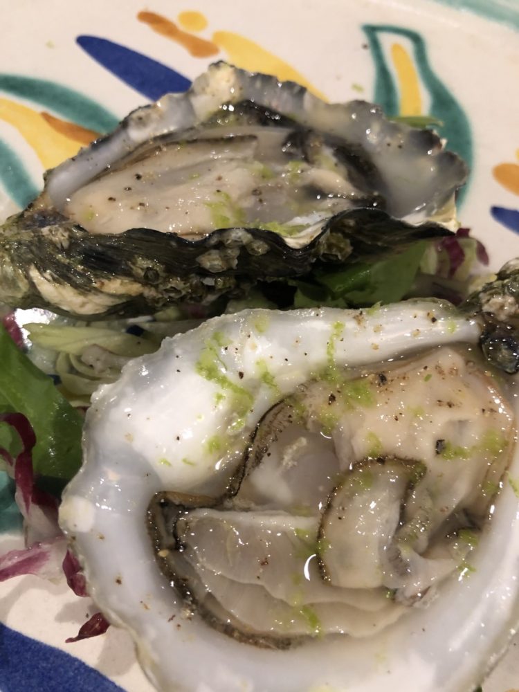 Buono, l’antipasto, dicevamo, ma l’applauso scatta per la scenografica ostrica Gillardeau, delicatamente affumicata, con sale maldon e lime. Sollevata la cloche, le note iodate e quelle fumè si rincorrono con eleganza, io le acchiappo e le fondo nel palato, prendendo l’ostrica con due dita e suggendo avidamente, senza perdere una stilla dei suoi umori marini. Sbrodolarsi è assai facile, ma non per me. Un pizzico di esperienza ci sta..