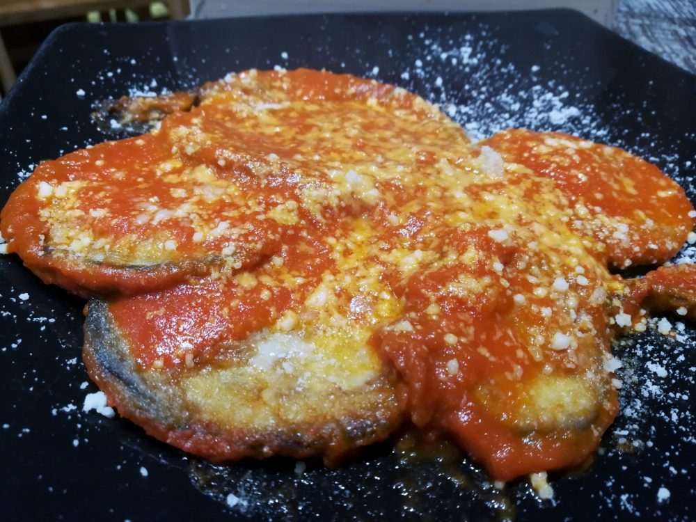 Per contorno prendiamo le invitanti Patate al forno (€ 3,00) e la ParmiGgiana (€ 3,00) come la fanno qua, ovvero tagliata tonda e fritta, ricoperta dal gustoso ragù della casa e da una spolveratona di formaggio grattugiato.