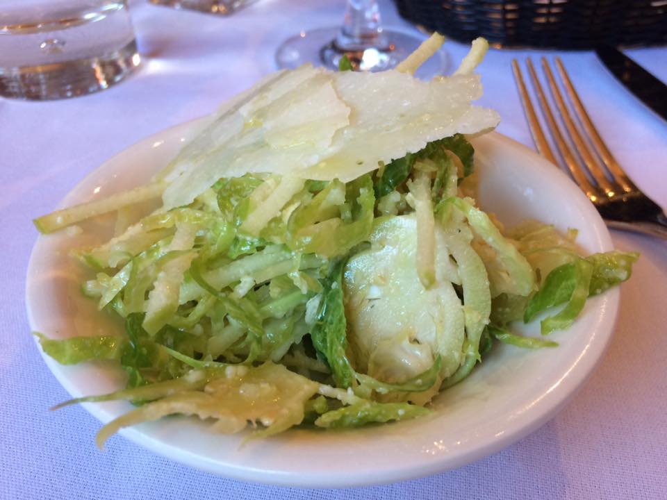 Paola’s, insalata di benvenuto – cavoletti di Bruxelles, mela verde, parmigiano
