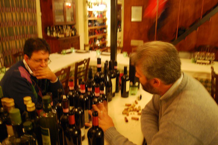 Le nostre bevute collettive son così. Ci si organizza attorno ad un tema enologico ed ognuno porta le bottiglie che ha. Invitiamo anche alcuni Produttori che così ci dicono qualcosa dei loro vini, del territorio, beviamo e mangiamo fino a notte fonda e istruendoci ci divertiamo come matti.