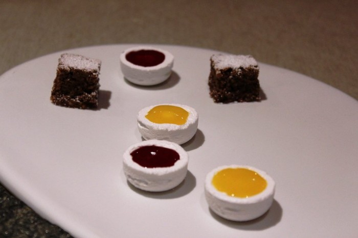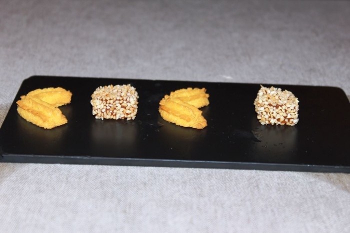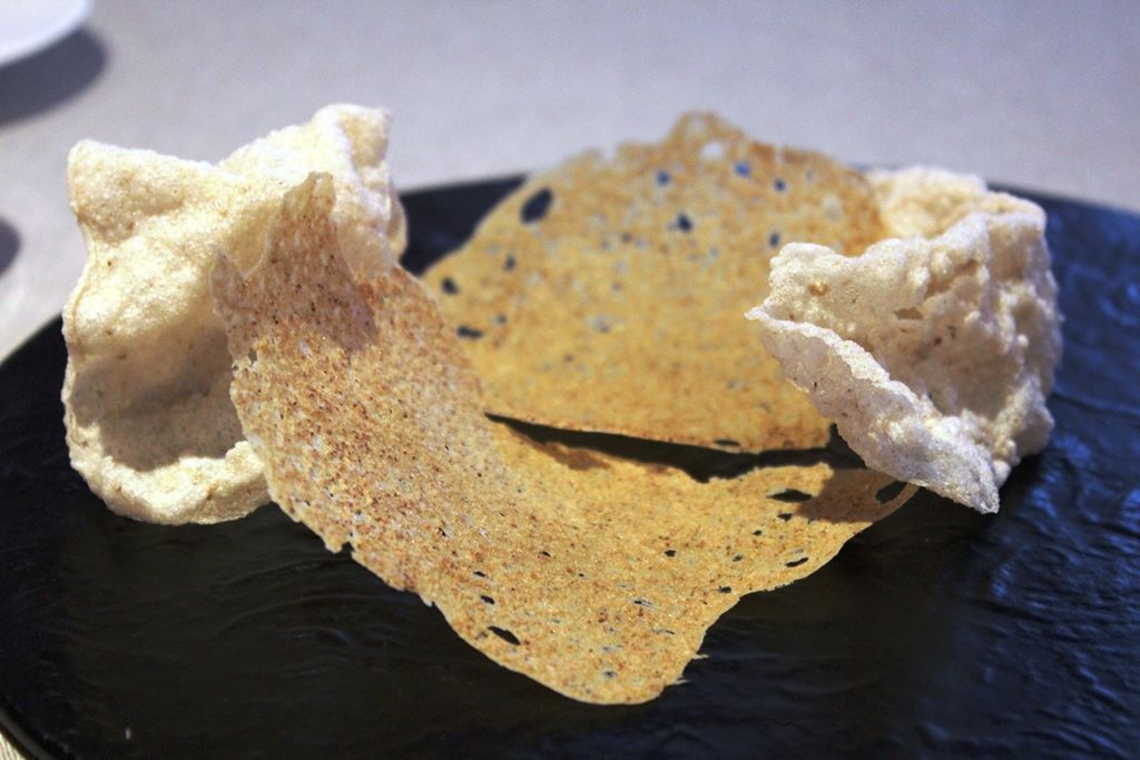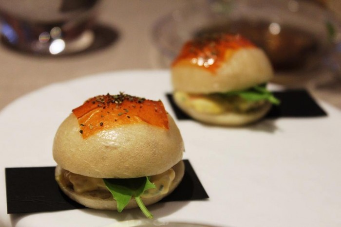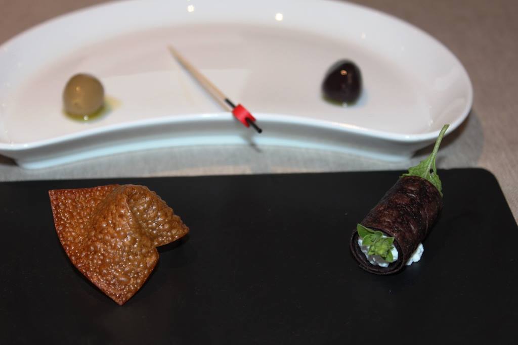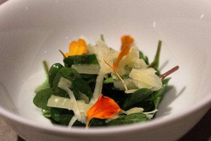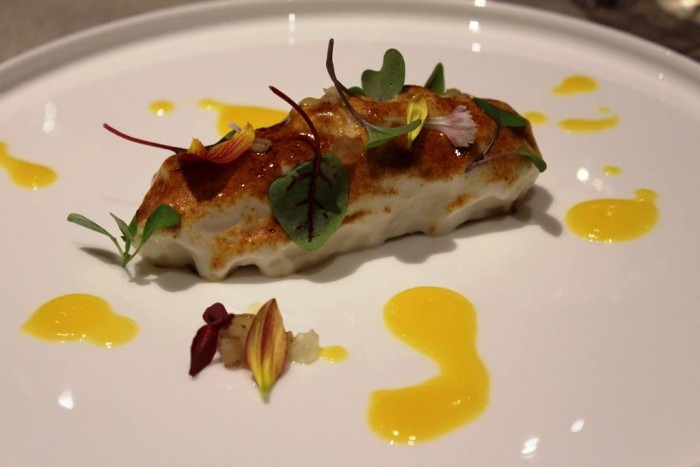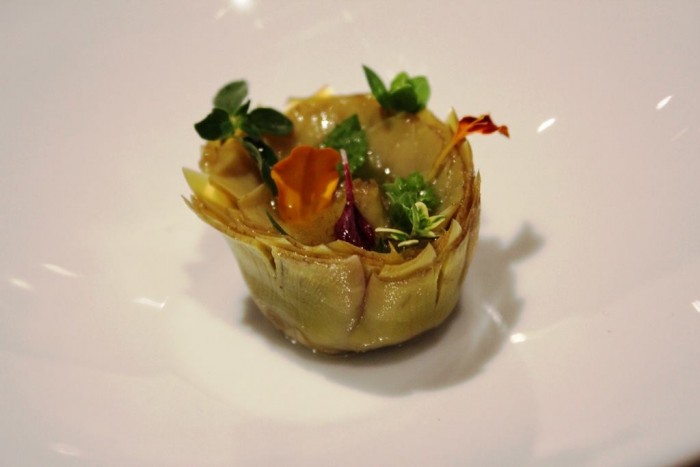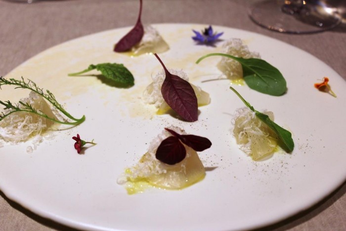 I canapè iniziali sono “spaziali”, consentitemi il termine, divertenti, leggeri, stimolano l’appetito, l’esempio su tutti è la cialda di arachidi, foie gras e gingerino, spugna di bietola alla salsa tonnata, complesso al palato senza appesantire, o il carciofo con olio di brace, delizioso nelle nuance vegetali.