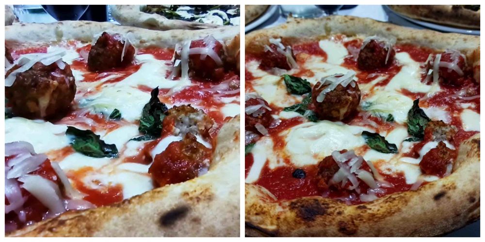 Da quello che abbiamo capito il pizzaiolo è geloso delle preparazioni da utilizzare sulle sue pizze ma di tanto in tanto non resiste ad utilizzare qualche prelibatezza dello chef, come le polpettine fritte che hanno arricchito la nostra Margherita (non siamo amanti delle polpette ma queste ci hanno fatto ricredere sui nostri gusti e ci hanno deliziato intensamente sia nell’assaggio a solo sia in abbinamento alla pizza).