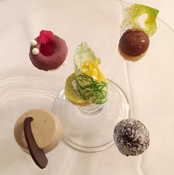 Per terminare l’incontro con i loro ospiti, Paolo e Laila offrono “sorrisi”. Dopo, il predessert, il dessert, la piccola pasticceria, una mini cake, c’è, infatti, “il ritorno all’infanzia”, un piatto colorato che sembra uscito dal paese dei balocchi della favola di Pinocchio. Liquirizia, canditi di agrumi e lecca lecca. Leccornie che regalano inevitabilmente un sorriso spontaneo dovuto al collegamento mentale immediato con i ricordi della propria infanzia.