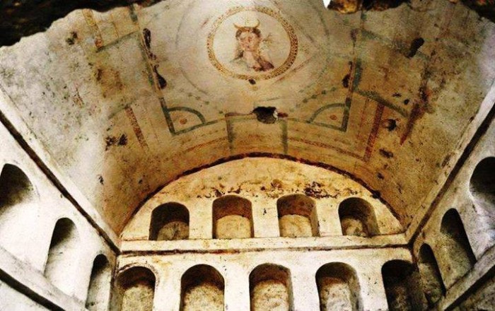 I resti di un colombario romano, inseriti nelle mura del locale, ci ricordano che poco distante c’è la necropoli di Cappella, con i begli affreschi della dea Iside.