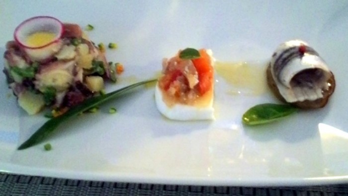Ben eseguita la semplice insalata di polpo con patate come la seppia con crema di peperoni.