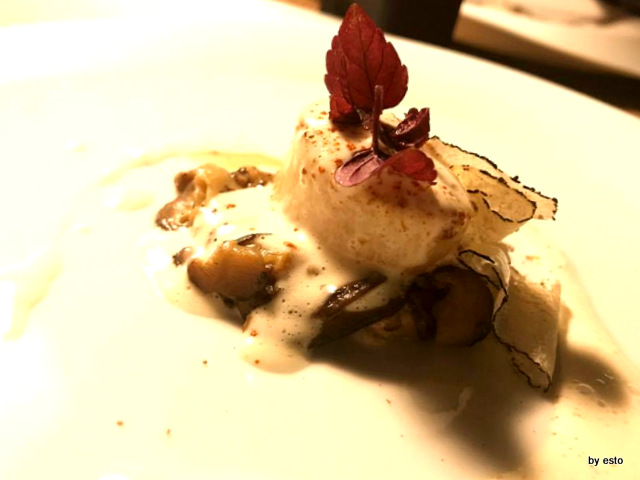 Capasanta con funghi shitake, maionese calda di ricciola, polvere tandori e tartufo.