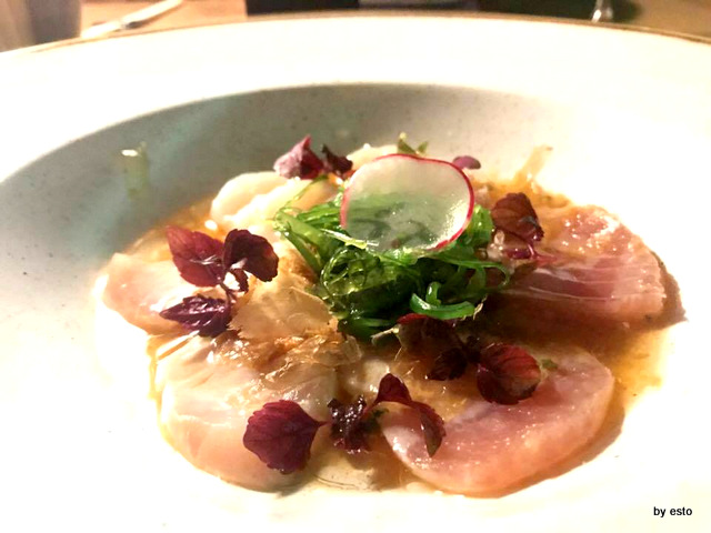 Carpaccio scottato di tonno magro, ricciola, pesce burro.