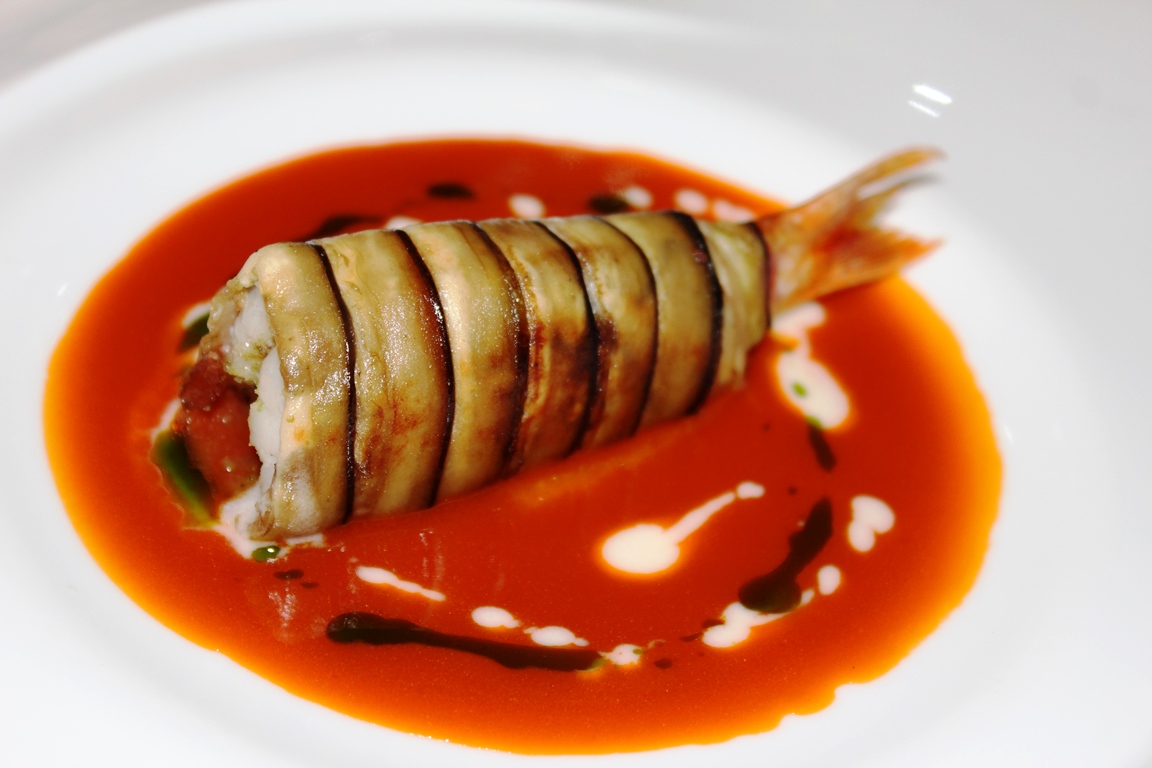 La triglia di scoglio, melenzana, cacioricotta è il piatto del viaggio. La cottura del pesce è millimetrica, la nota amarognola delle melanzane è garbata e mai invasiva, il fondo un capolavoro, il cacioricotta è usato come esaltatore di sapore e non come grasso, tecnica sopraffina, per un piatto emozionante.