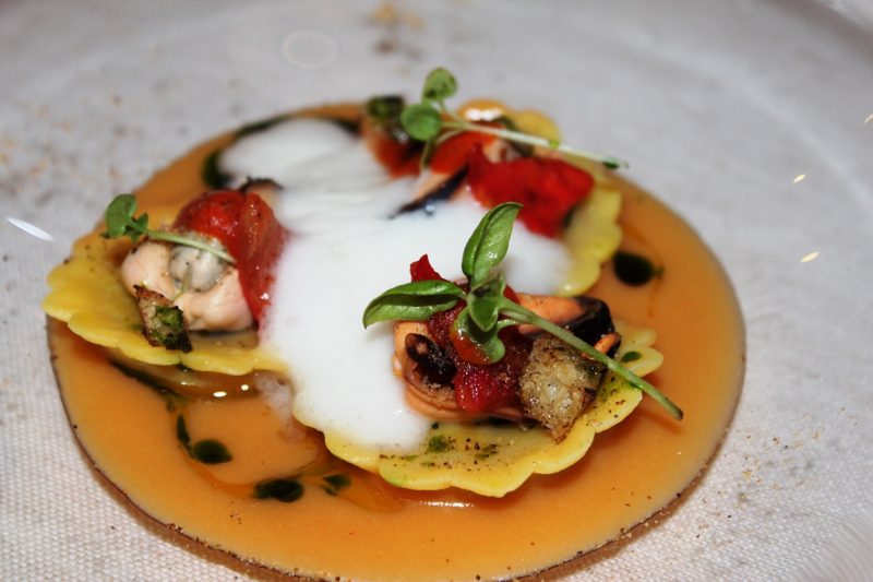 La pasta e fagioli con cozze, immancabile in tutti i menu campani, piatto di tradizione, rustico e godurioso. Michele, nella sua versione, tira fuori il coniglio dal cilindro, perchè trasforma un piatto dai sapori rustici, in un’esecuzione raffinata ed elegante, toni delicati, senza snaturare i sapori originali.