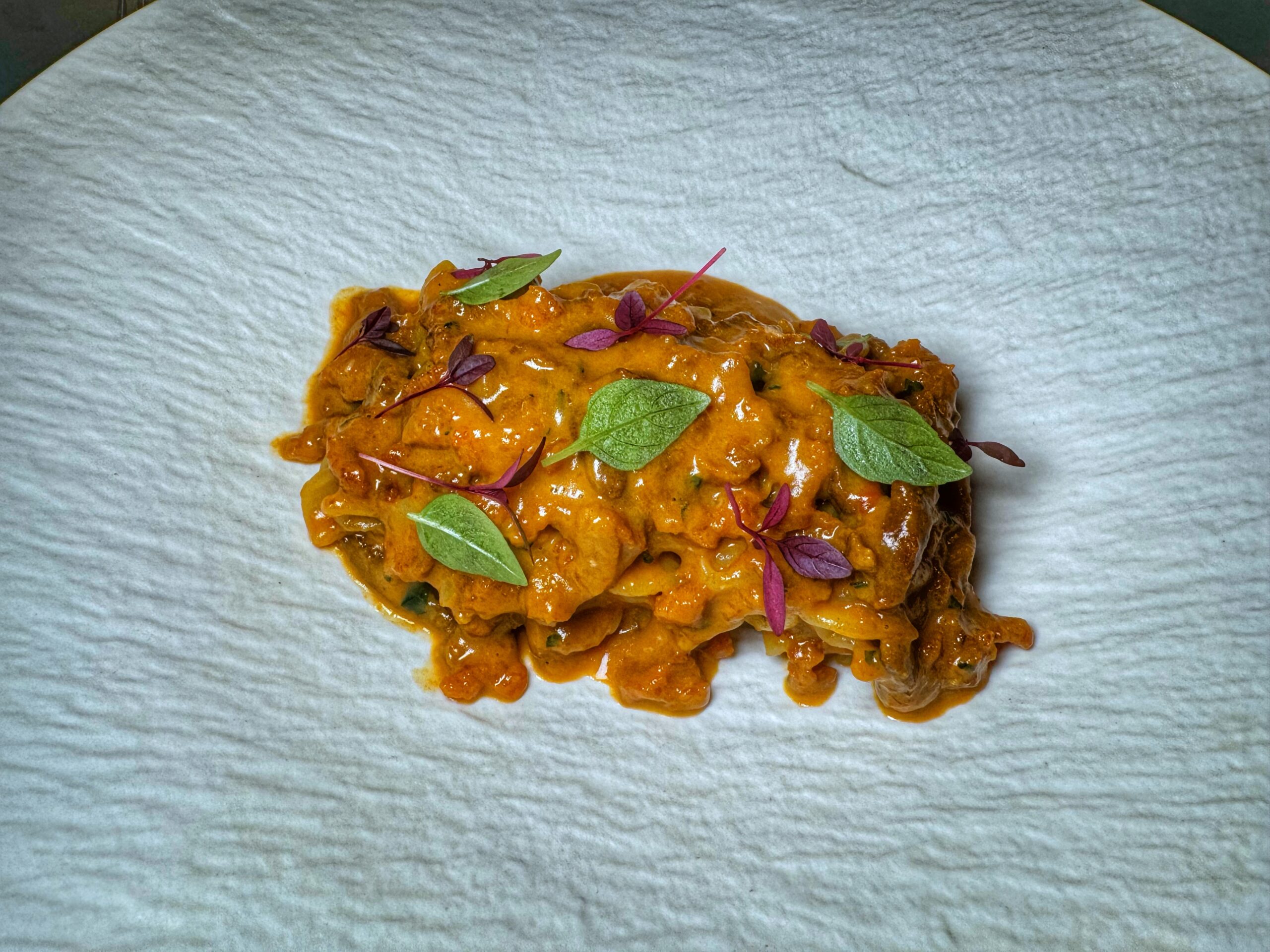 al riccio di mare sebbene forse con una quantità eccessiva di polpa di riccio.