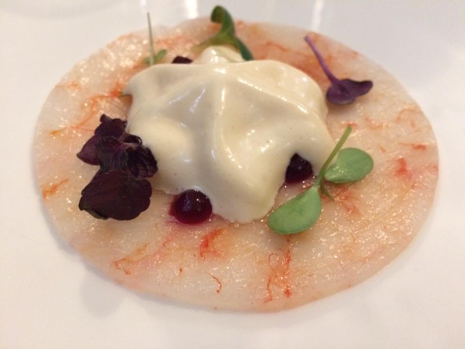 Sancta Sanctorum, Cocktail di gamberi, maionese escoffier e gel di rapa rossa