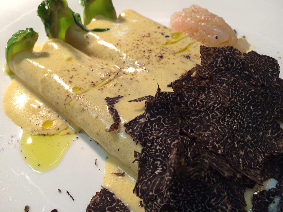 Sancta Sanctorum, Candele cacio uovo e pepe, puntarelle saltate, tartufo pregiato ‘diamante nero’ e tartare di palamita
