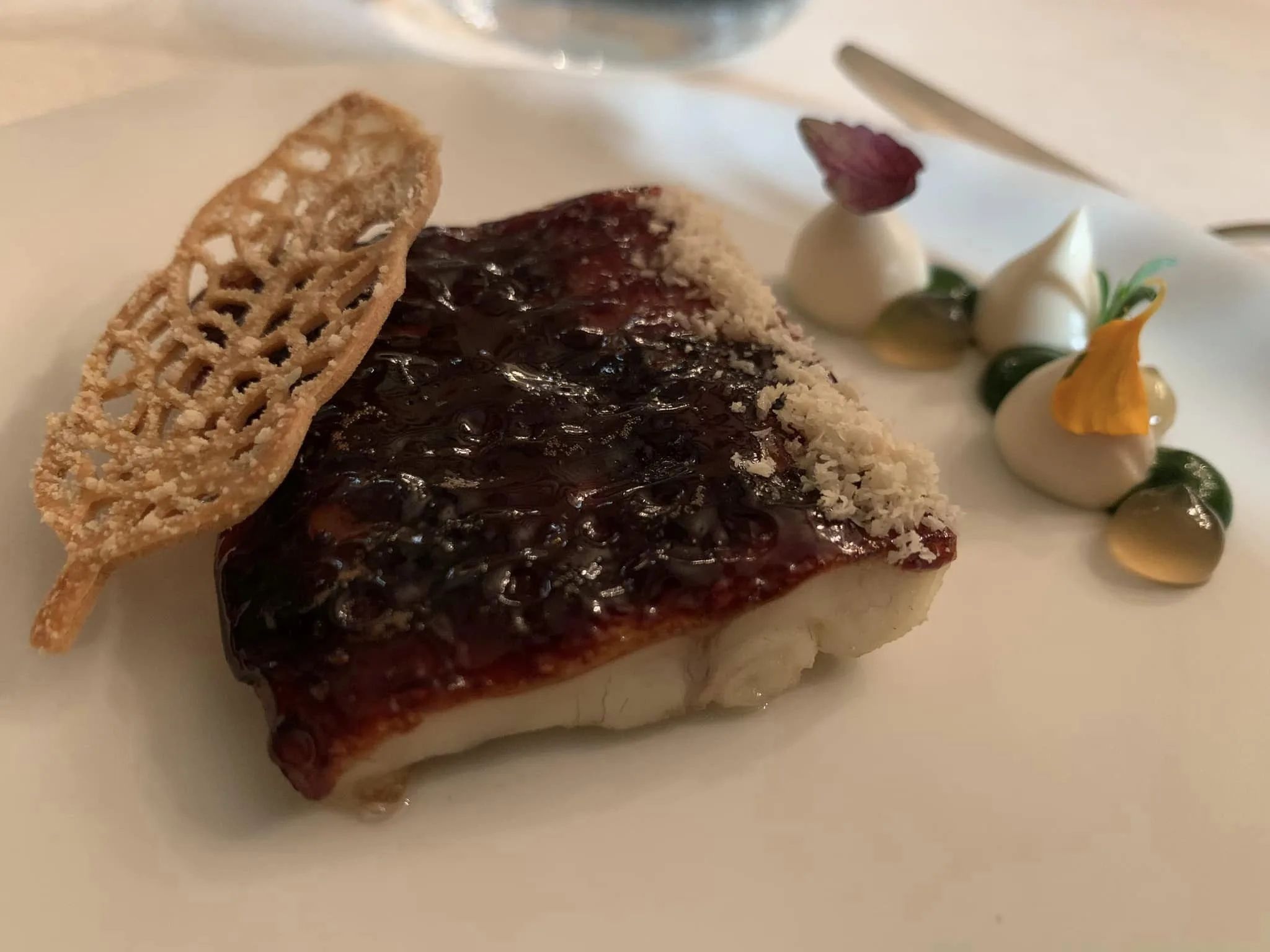 I due secondi di pesce sono frutto di contaminazioni. La triglia, regina del mare, contaminata dalla Toscana e dall’aglione, l’anguilla dai rimandi giapponesi, in cui ho apprezzato particolarmente la “sgrassatura”.