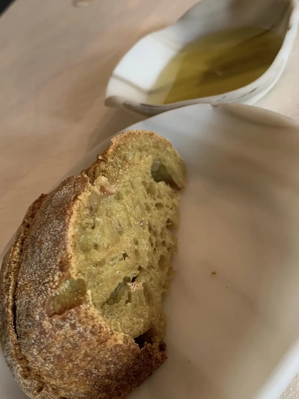 Ristorante Santa Elisabetta, extravergine e pane allo zafferano e nocciole