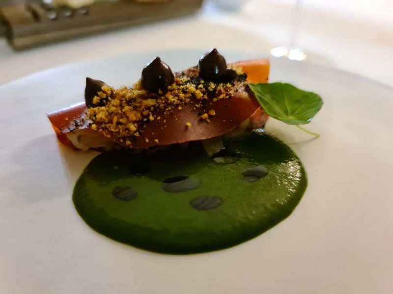 Conosco Rocco de Santis da tanti anni. Forse la prima volta l’ho visto nelle cucine della Torre del Saracino da Gennaro Esposito. Un professionista molto bravo, un ragazzo serio e preparato che oltre all’esperienza da Gennaro Esposito è passato per le cucine di Pino Lavarra e Georges Blanc. Un professionista che prima di tutto ha fatto tanta gavetta, con le spalle larghe, che ha la maturità e l’esperienza per dedicarsi al cliente, più che al proprio ego. Non è un tema banale, almeno per me, in questo momento storico della gastronomia, dove tanti cuochi trentenni e quarantenni sono molto concentrati più su sé stessi che sul benessere e la piacevolezza del cliente. La cucina è prima di tutto piacere, rispetto della materia, cotture precise e io tutto questo l’ho trovato in fila nel mio pranzo al Santa Elisabetta.
