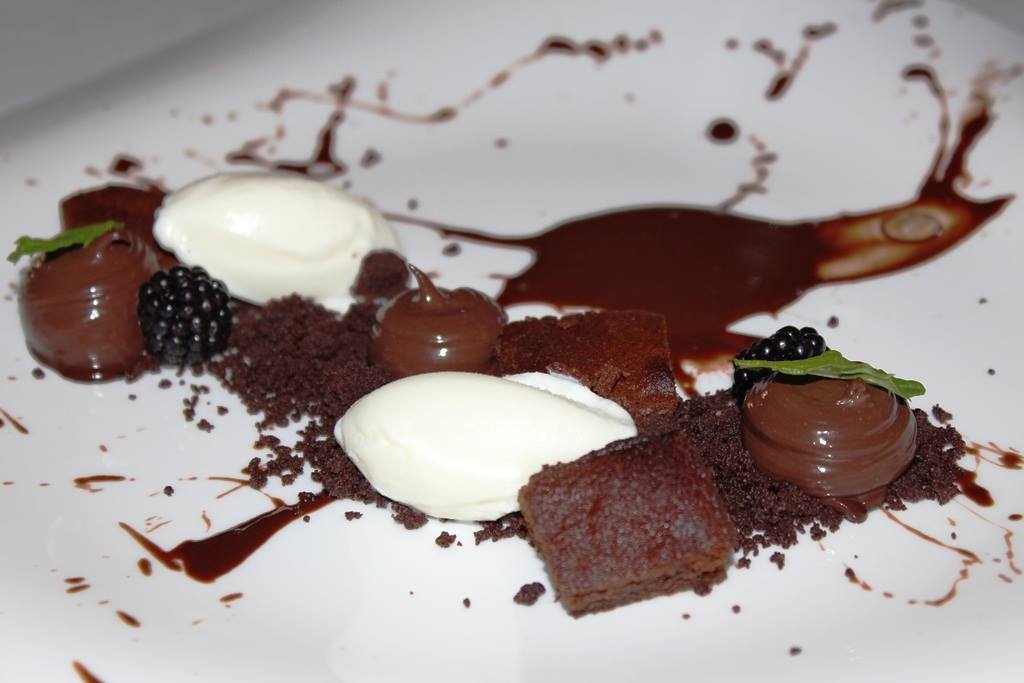 Pecorino fatto e affinato in casa, un goloso dolce al cioccolato per terminare il pranzo.