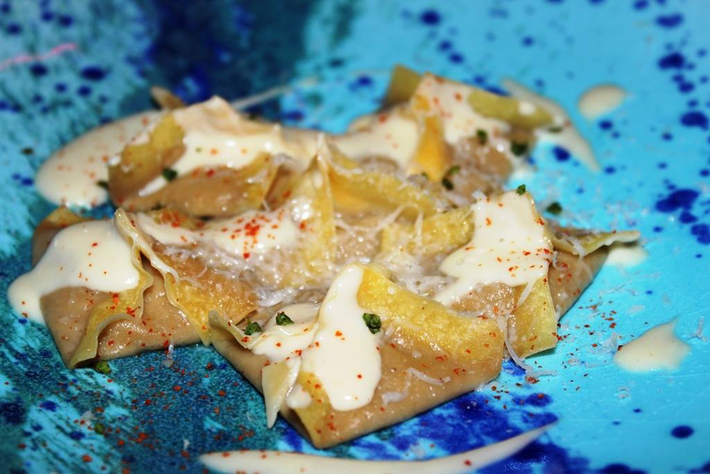 I ravioli di melanzana profumano d’estate, anche questi golosi, e anche in questo caso davvero notevole la fattura della pasta fresca.