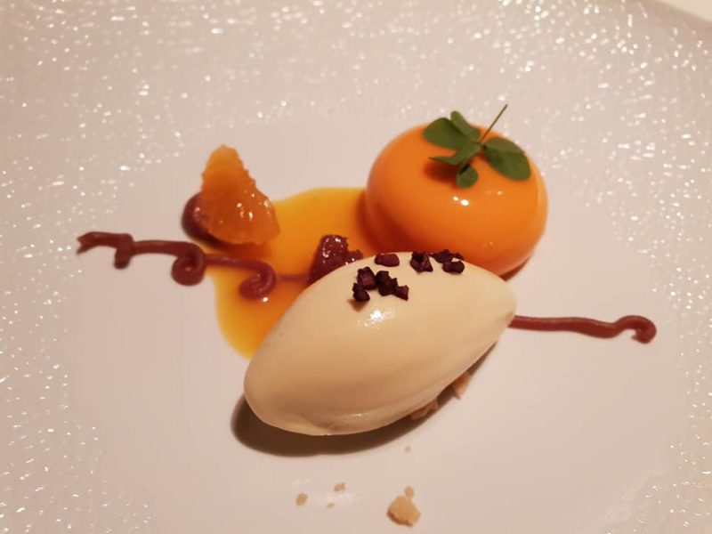 Nell’intermezzo, al posto del risotto, un risone variopinto con ostriga, fegato grasso, tartufo nero e il fondo della cacciagione: non osiamo immaginare cosa sarebbe stato con il riso, ma senza dubbio l’utilizzo del risone lo rende più leggero e più simile a un intermezzo che a un vero e proprio primo piatto.