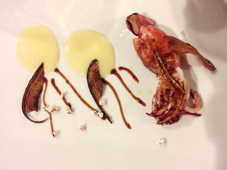 Ma quello che ci ha colpito è stato questo piatto che osa inserire la banana in una preparazione salata e lo fa in modo perfetto e saporito. Un passo in avanti davvero audace nel quale anche il culatello ha la sua funzione, quella di dare un po’ di spalla e grassezza al sapore finale. Quanto basta, senza sovrastare il mare.