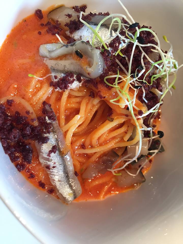Sud a Quarto, puttanesca ramen (capelli d’angelo Felicetti con pomodoro pane croccante alle olive, polvere di capperi e pesce azzurro) 30/3/2016 Torna a: I nuovi piatti di Marianna Vitale: la freschezza del Sud a Quarto Sud a Quarto, puttanesca ramen (capelli d’angelo Felicetti con pomodoro pane croccante alle olive, polvere di capperi e pesce azzurro)← PrecedenteSuccessiva →