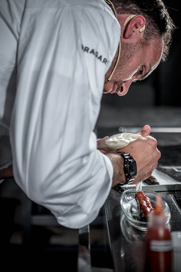 A questo dobbiamo aggiungere la formazione durata quattro anni (dal 2001 al 2005) di Francesco tra Passard e Igles Gorelli che hanno gestito il suo naturale talento, lo hanno formato e gli evitano le cadute tipiche degli autodidatti. Dunque: famiglia, tradizione, formazione. Il quarto lato del quadrilatero è l’esperienza quotidiana di 16 anni di attività durate quasi tutto l’arco dell’anno, perché Taverna Estia è uno di quei pochi ristoranti bistellati (la prima stella nel 2008, la seconda nel 2015) che stanno aperti quasi tutto l’anno.