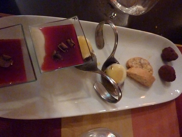 Grande lavoro sui dolci, dicevo, per i quali lo chef mostra una predilezione dedicandogli lunghe ore in cucina. Risultato: non sono in carta perché ogni giorno ne propone 6 o 7 diversi. Io provo al piccola pasticceria: un tartufo con peperone di Senise, un biscotto con le mandorle, un croccantino al cioccolato bianco e un piccolo dolce al bicchiere con vaniglia e sciroppo di fragoline