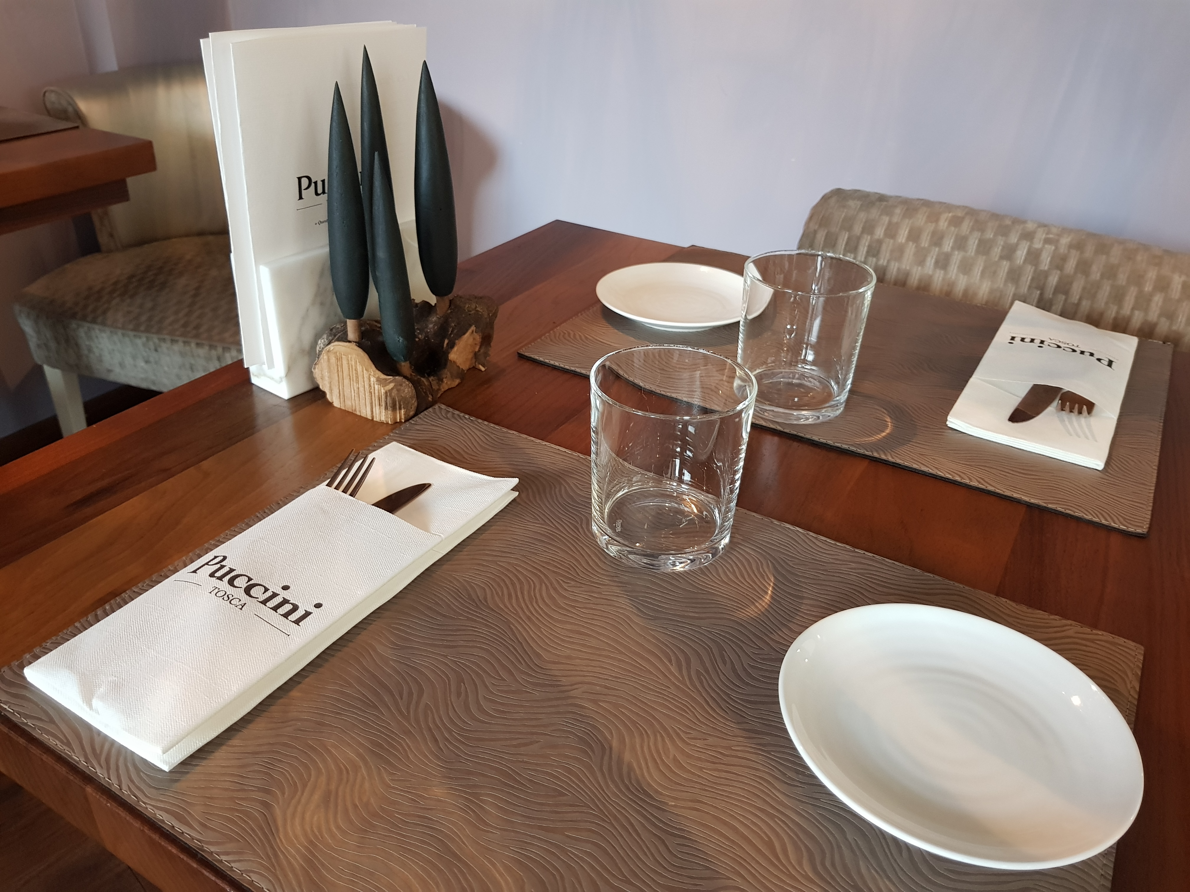 TOSCA, non è solo un nome ma è un acronimo che dedicato alla sua terra ispiratrice: Toscana, Omaggio, Sensibilità e Scoperta, Cucina ed Arte. Così tre uomini (Saverio Sbaragli, Jean-Jacques Ghelfi e Marco Borgianni), uniti dall’amore per la Toscana e il Bel Canto, con la voglia di trasmettere il loro pensiero di qualità italiana, hanno disegnato e cucito questo incantevole posto che si caratterizza per la sua eleganza e ricchezza della proposta. Come quasi tutti i grandi ristoranti metropolitani, per accompagnare gli ospiti anche nel lunch quotidiano al Tosca è abbinato il bistrò Puccini, uno spazio dedicato alla cucina meno tecnica e più di tradizione, sempre di ispirazione toscana.