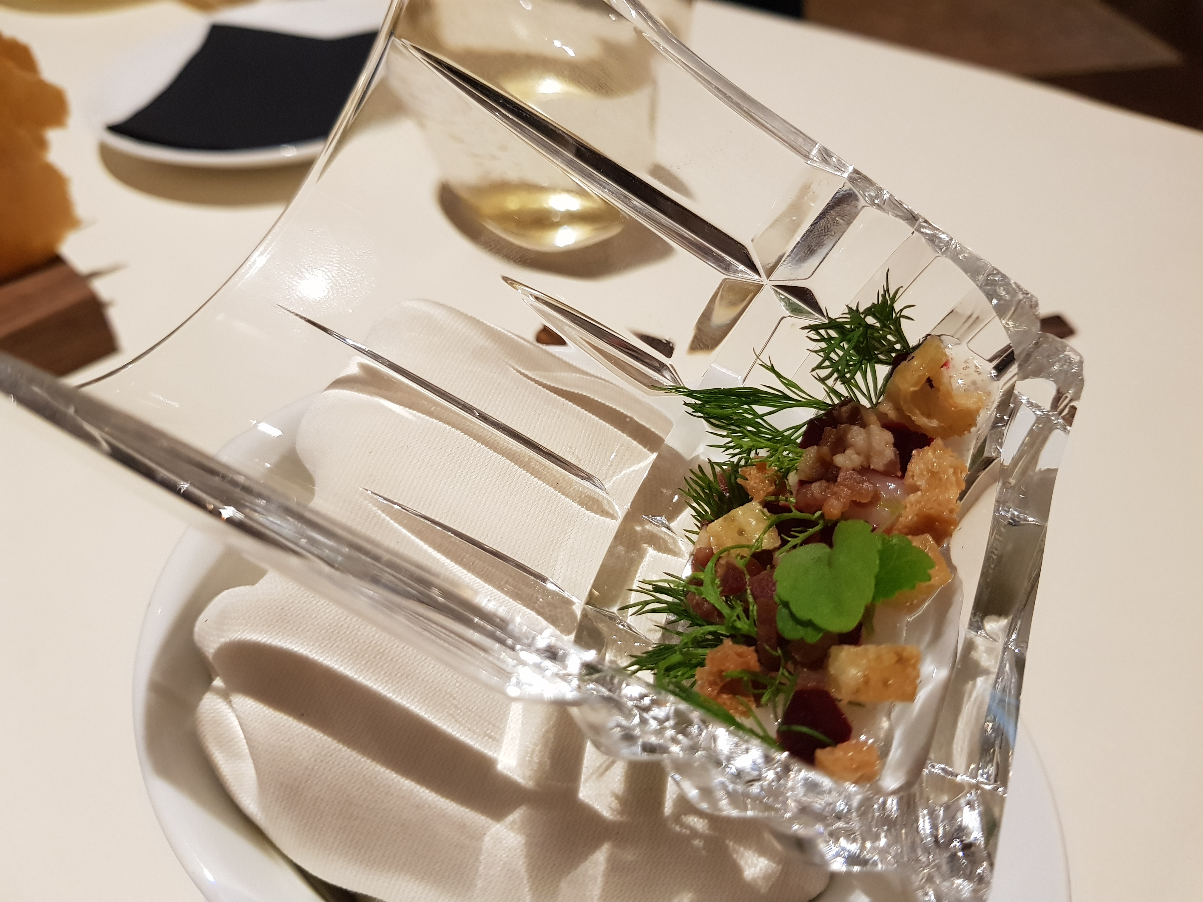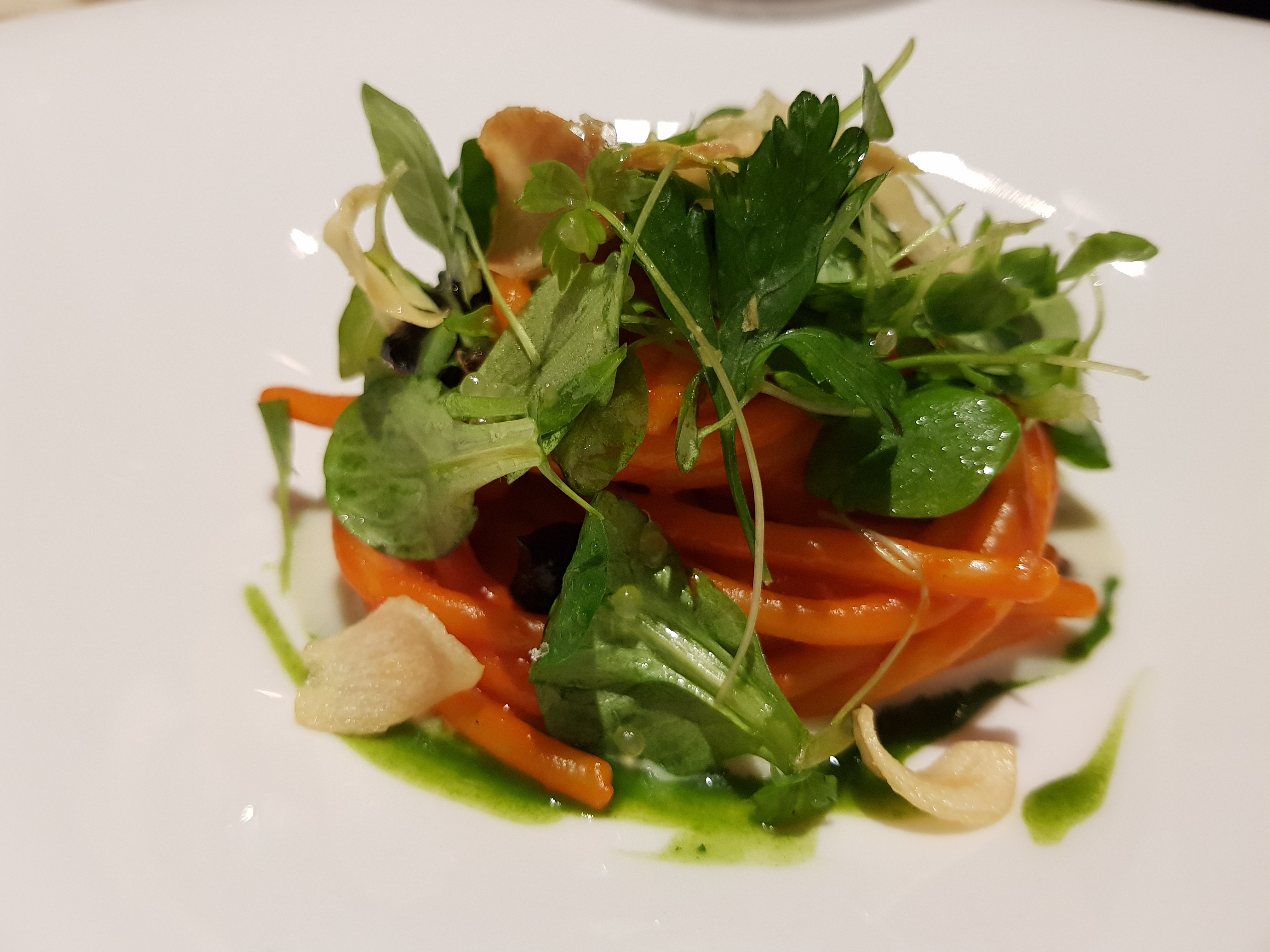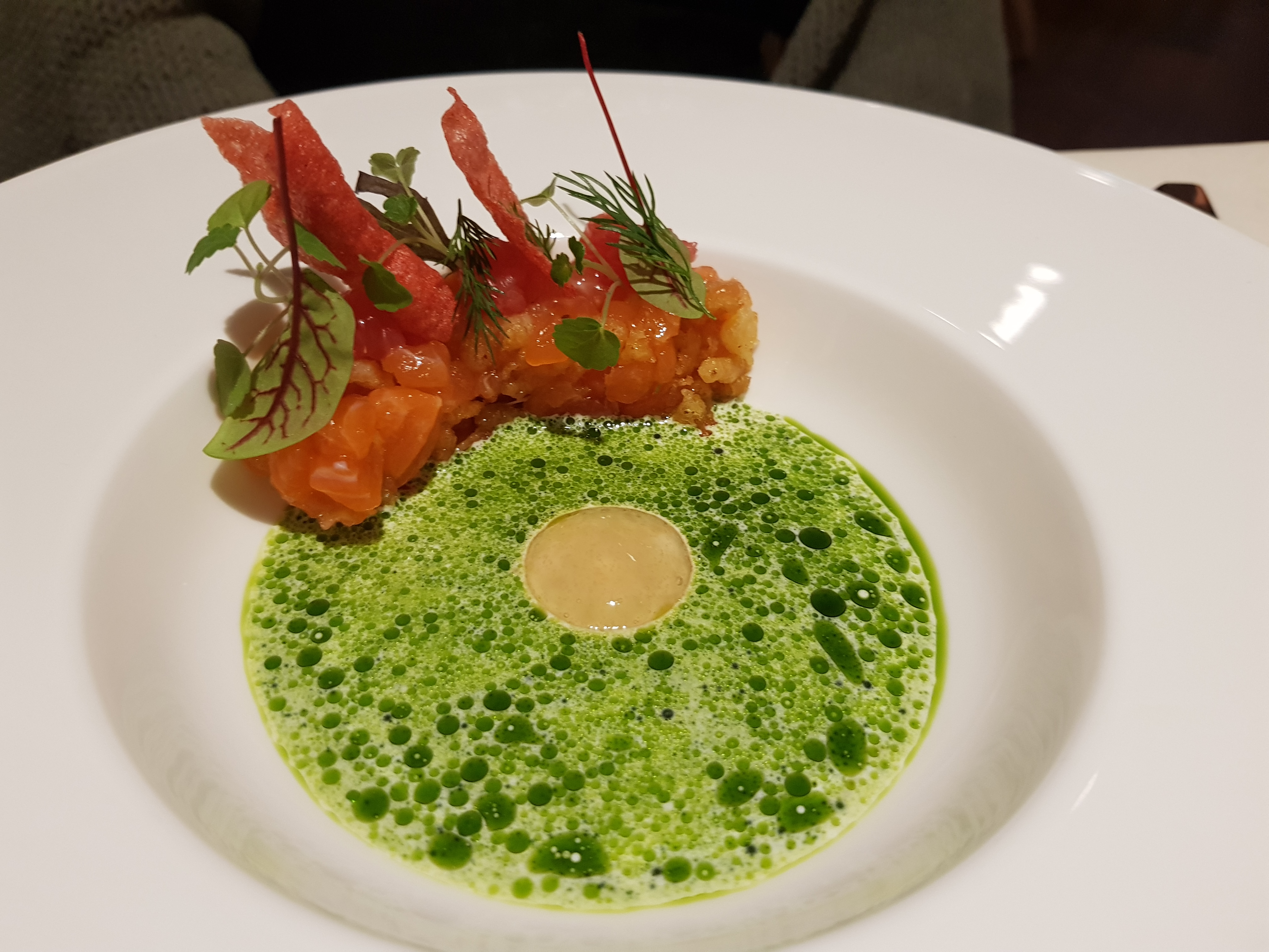 Una sala che gira alla meraviglia, le esperienze internazionali di tutti i componenti del team restituiscono un’esperienza complessiva di grande piacevolezza e benessere. Questo l’obiettivo dello chef, far star bene gli ospiti e coccolarli, partendo da un aperitivo divertente, passando da piatti creativi che lasciano spazio a qualche sorpresa come la Caprese 2.0 e rassicurando con la tradizione, giusto attualizzata, dello spaghettone aglio e olio o dello gnudo  con salsa al pomodoro. Si chiude con una pasticceria raffinata e precisa che non stanca, grazie alla ricerca di note fresche. Il cannolo è un concentrato di bontà.