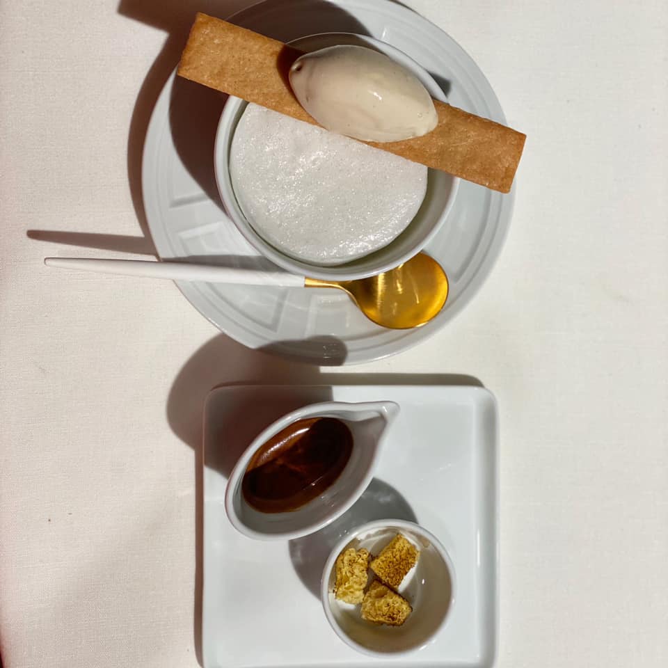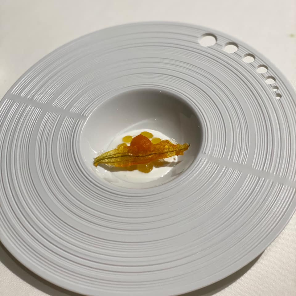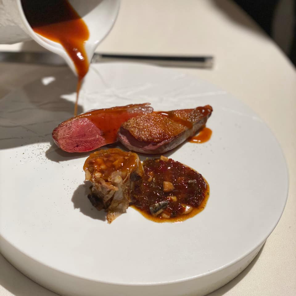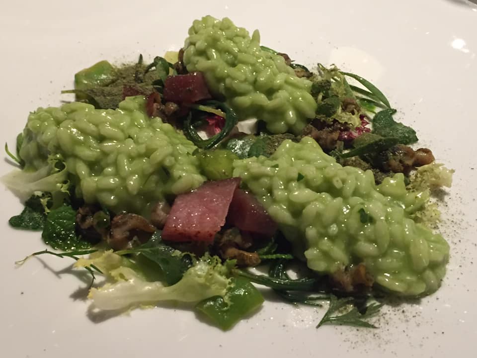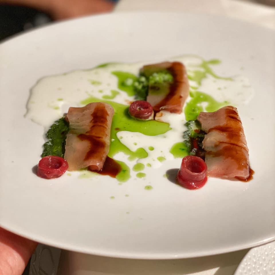 Il suo primo menù è scoppiettante, la visione del pomodoro è più sicula che campana, cerca cioè più la dolcezza che l’acidità. Anche l’uso delle alici lo abbiamo considerato decisamente di altissimo livello perchè ha estratto sapore senza inseguire l’eccesso sapido e iodato. La scuola di Heinz si vede nei secondi, la triglia con il suo fegato è la migliore mai provata sinora mentre il piccione, sì il solito piccione, ha vissuto una seconda vita con una interpretazione magistrale.