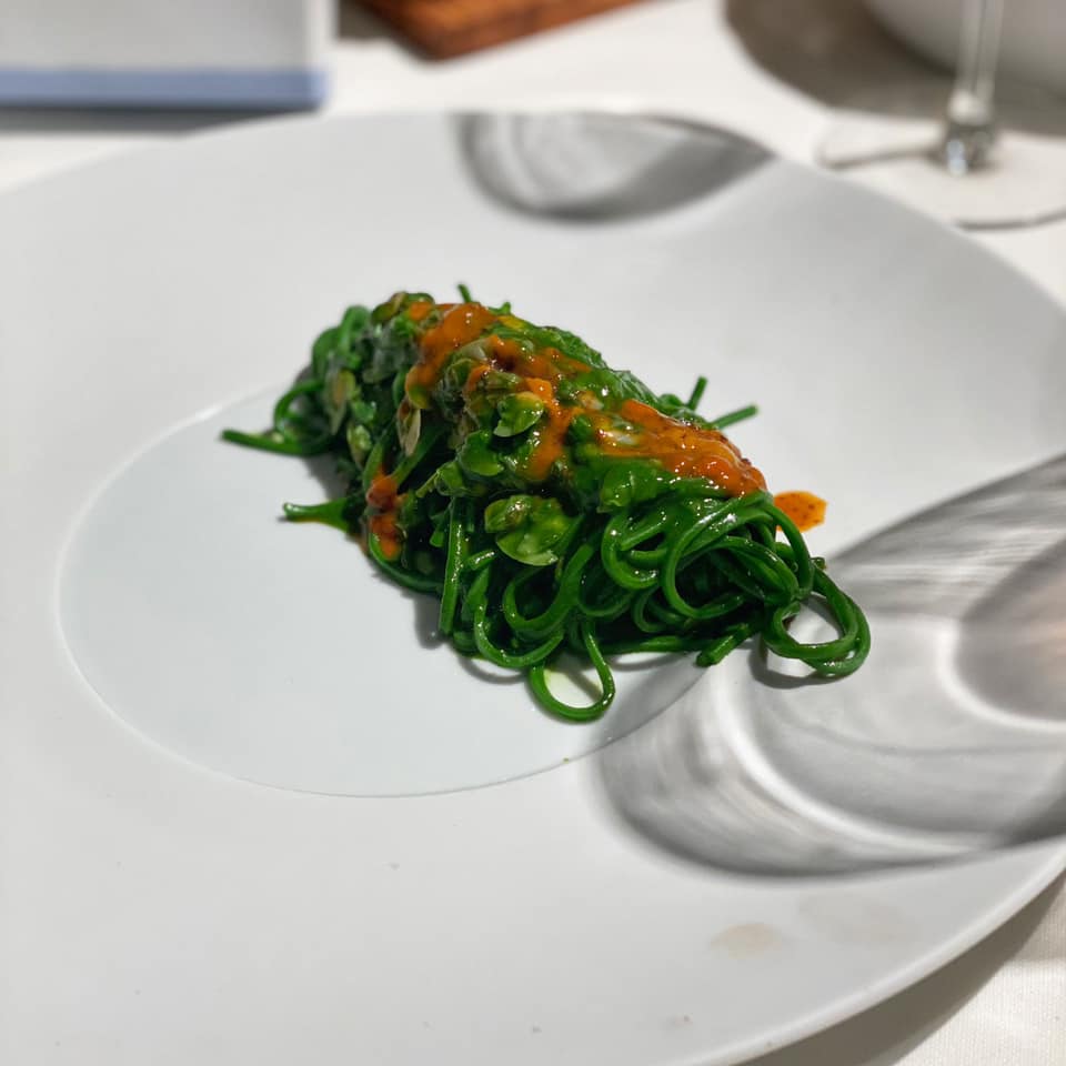 Tre Olivi a Paestum, tagliolini di alga spirulina e frutti di mare
