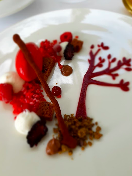 Col “Colombaccio crudo, rapa, liquerizia, ciliegie e lavanda” si toccano delle vette altissime sia nel trattamento della materia prima (la carne di colombaccio, cruda, è di una dolcezza e delicatezza rara) sia nel bilanciare il dolce del gelato di rapa che l’acidità delle ciliegie.