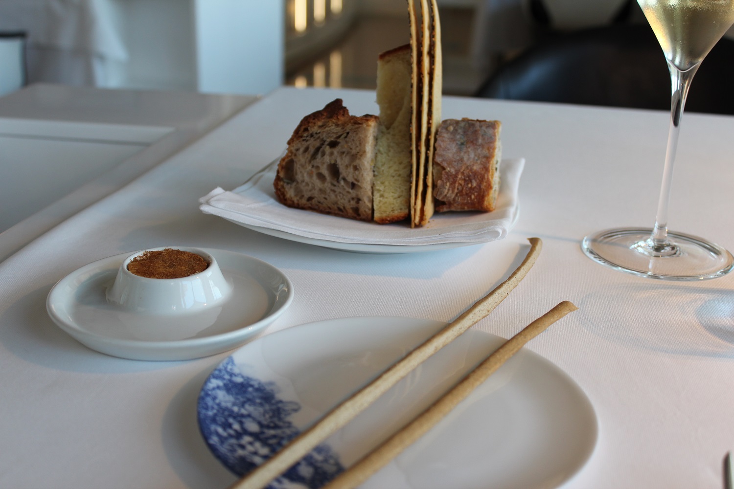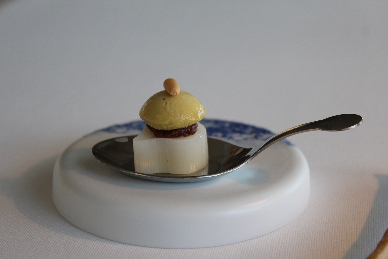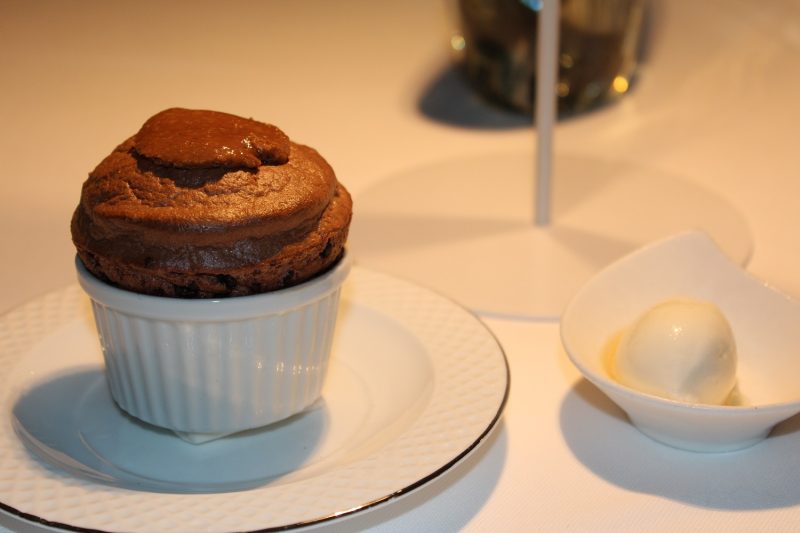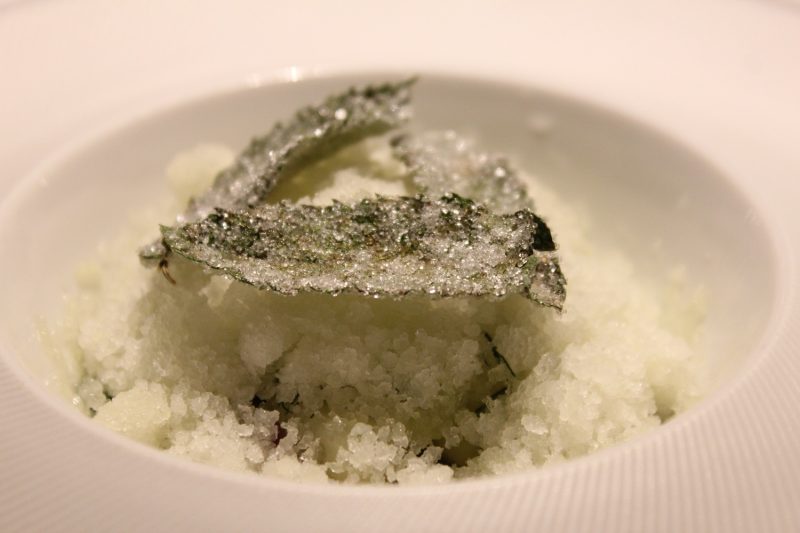 La pasticceria per il secondo anno è curata dal giovanissimo Mattia Casabianca, senigalliese, che avuto esperienze da Paco Torreblanca, dal compianto Michel Roux e da Gordon Ramsay. Fresca e corroborante la granita e crema di chartreuse, melone bianco e menta cristallizzata. Da manuale il soufflé al cioccolato con il delizioso gelato al Lagavulin, che spigiona una raffinata nota torbata.
