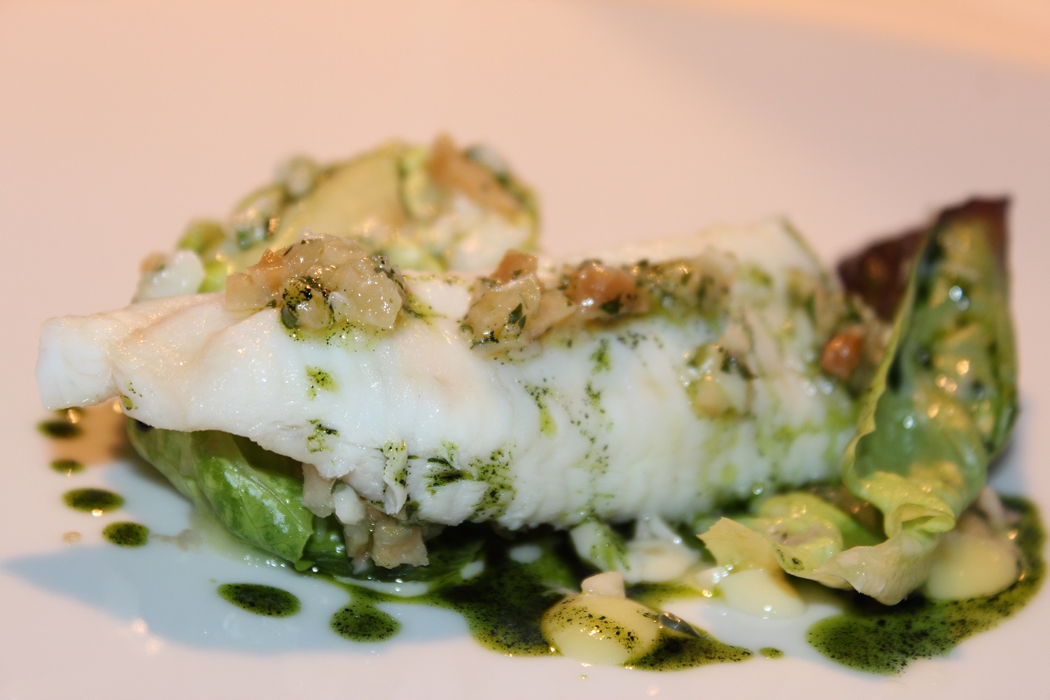 Lattuga sogliola e bergamotto, dedicato a Piergiorgio Parini. Quanti cuochi al top dedicherebbero un piatto ad un loro collega? Segno di umiltà, oltre che di grande stima verso Piergiorgio. Tutti sanno quanto ho amato la cucina di Parini ai tempi del Povero Diavolo a Torriana. Le note vegetali diventano protagonista e la sogliola diventa il contorno, proprio come faceva Piergiorgio, valorizzando il mondo vegetale. L’indivia di calamaro e alloro è un trompe-l’œil. Sembra un calamaro, ha un sapore deciso di calamaro, ha la consistenza del calamaro, ma è indivia. Un lavoro incredibile sul brodo di polpo e sull’estrazione del succo del calamaro, con un passaggio nel green star, portano a questo sorprendente risultato.