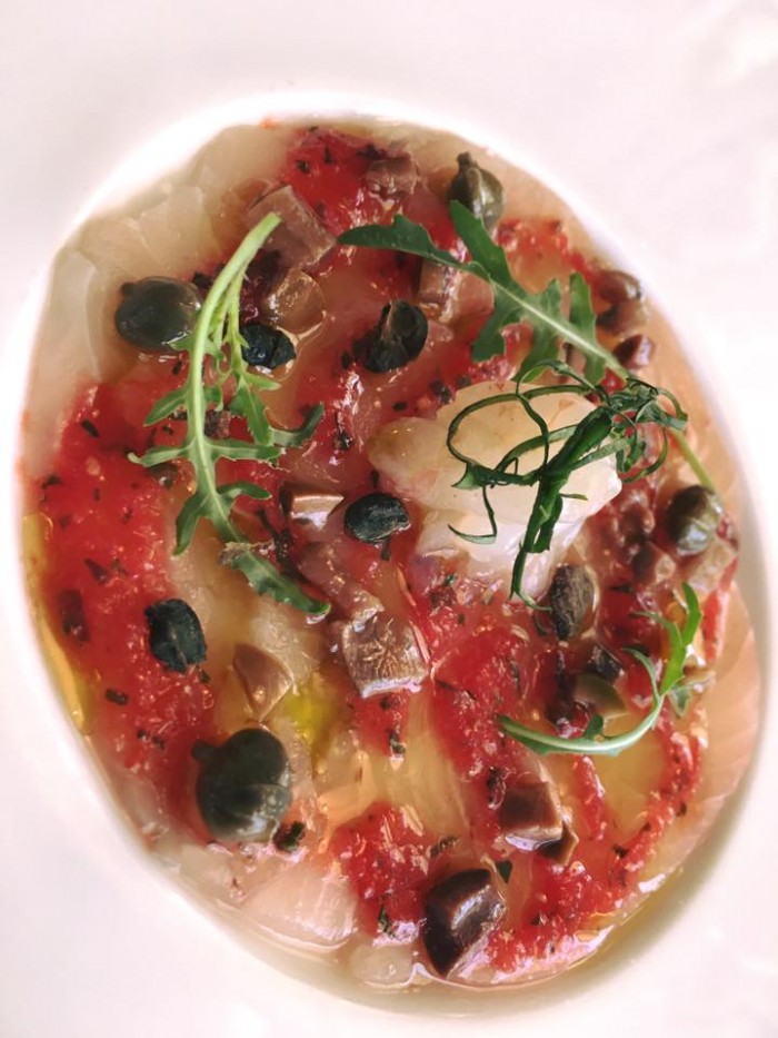 Uliassi, Crudo di ricciola e scampi alla puttanesca