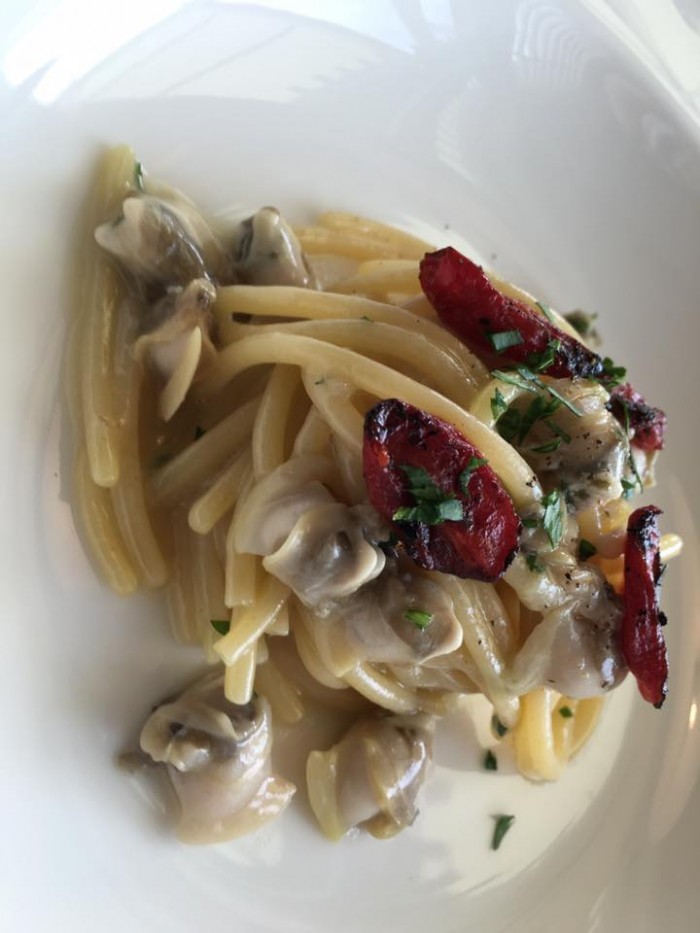 Uliassi, Spaghetto affumicato alle vongole e datteri arrostiti