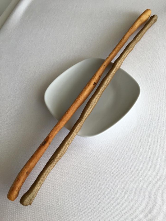 Uliassi, Wafer di foie gras, mandorla come oliva ascolana, letto di pesce crudo, burro e tartufo