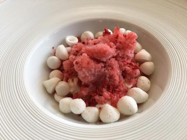 Uliassi, granita di fragole, panna, mascarpone con meringhe al cardamomo