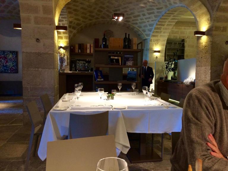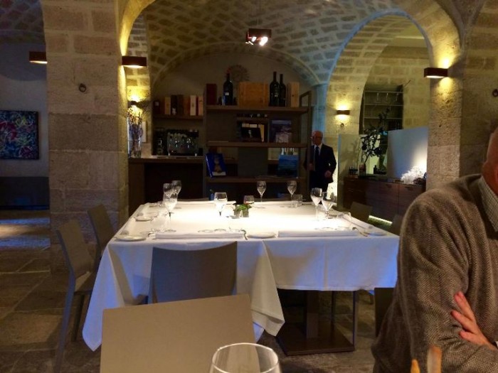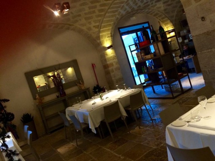 Entrando nella sala si è circondati dalla pietra in un connubio perfetto fra moderno e un passato che trasuda dalle “chianche” che rivestono il pavimento o dalle arcate che sostengono il palazzo dell’800.