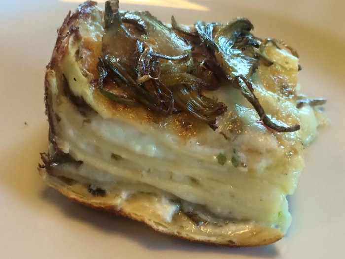 Il pranzo potrebbe finire qui, ma siamo terroni e senza pasta non possiamo stare. Ecco allora una lasagnetta di carciofi molto delicata e la linguina con il baccalà che ci richiama Napoli e Somma Vesuviana dove questo piatto è stato creato.
